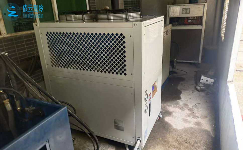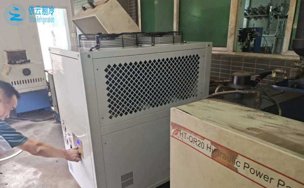 液压油的温度一高,它的粘度、其它属性就会发生了变化,影响到液压系统的稳定性。我们必须严格控制液压油的温度,采用合适的制冷设备降低液压油的温度。液压油的冷却有水冷、风冷、风冷+水冷三种方式,中山客户选择了风冷冷水机+加水冷的方式,液压冷却设备风冷箱式冷水机,5-30度可调,可以把液压油冷却到你想设定的温度,不锈钢大容量水箱,内置循环泵,源源不断把冷量输送给需要冷却的液压油。依云制冷专用为您提供液压油冷却降温用冷水机选型方案。