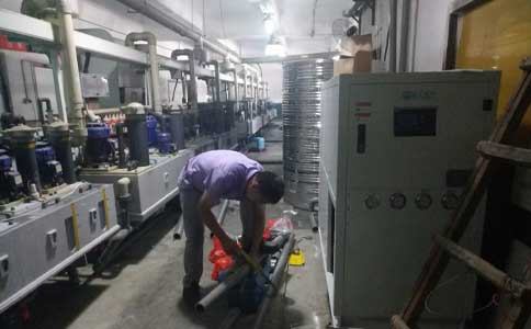PCB线路板生产车间用冷水机,其自带水泵和冷却水箱构成的制冷机组,冰水机组与PCB线路板生产循环水槽相连接,循环水槽的循环进水口分别连接各设备的出水口,而循环水槽的循环出水口分别连接各设备的进水口,所述循环水槽的循环出水口处设有水泵。依云制冷专用为您提供PCB线路板冷却用冷水机选型方案。